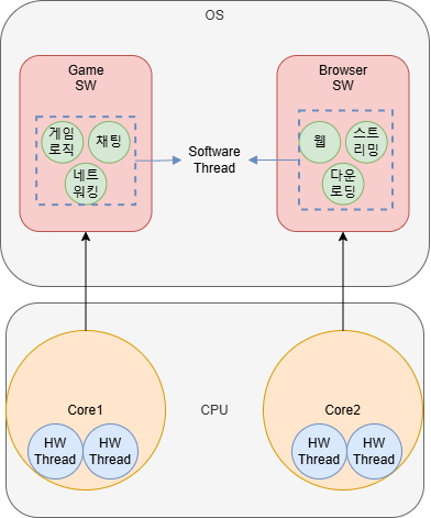 배경 기기의 발전으로 현재 일반인도 좋은 성능의 컴퓨터를 보급받아 사용하고 있다. 그뿐만 아니라, 게임 산업에서도 대규모의인원을 감당하여 원활한 게임 플레이 환경을 조성하게 될 수 있다. 그렇기 때문에 개발자는 프로그래밍에 관해 기기의 성능을 최대한으로 활용할 수 있는 방식으로 수행해야할 필요가 있다. 핵심 키워드는 바로 동시성(Concurrency)이다.동시성의 의미는 아주 간단하다. 서로 다른 두 행위(프로세스)를 동시에 수행하는 것을 뜻한다. 예를 들어, 네트워크를 통해 게임을 다운받는다고 가정해보자, 우리는 파일이 다운받는 동안에도,유튜브와 같은 사이트를 통해 스트리밍 시청이 가능하다. 그리고 다운로드가 얼만큼 진행됐는지 Progress Bar를 통해피드백(Feedback)을 동일한 시점..